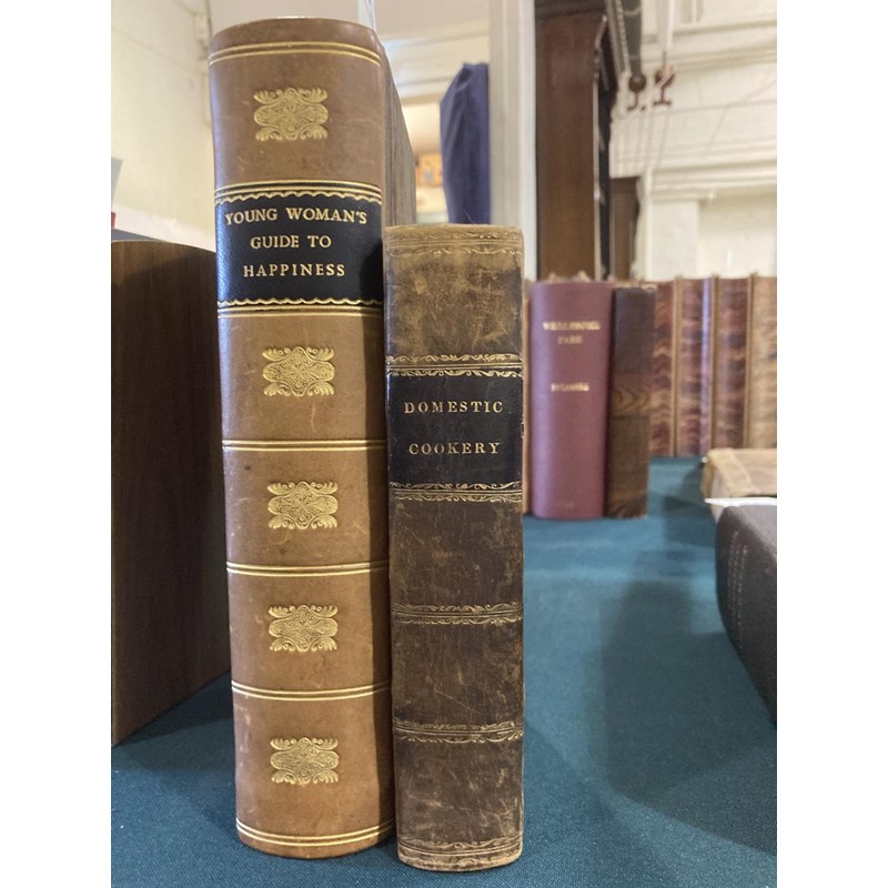 Armstrong, John. The Young Woman's Guide to Virtue, Economy, and Happiness..., engraved frontispiece, additional title and 11 engraved plates, browned, 2M torn without loss, contemporary calf, neatly rebacked, 8vo, Newcastle upon Tyne: MacKenzie and Dent, [c.1817]; [Rundell, Maria Elizabeth] A New System of Domestic Cookery, new edition, engraved frontispiece and 8 plates, some spotting, contemporary half calf, 8vo, London: John Murray, 1827 (2)