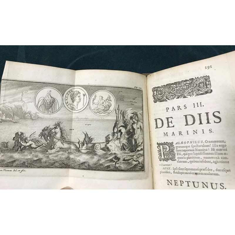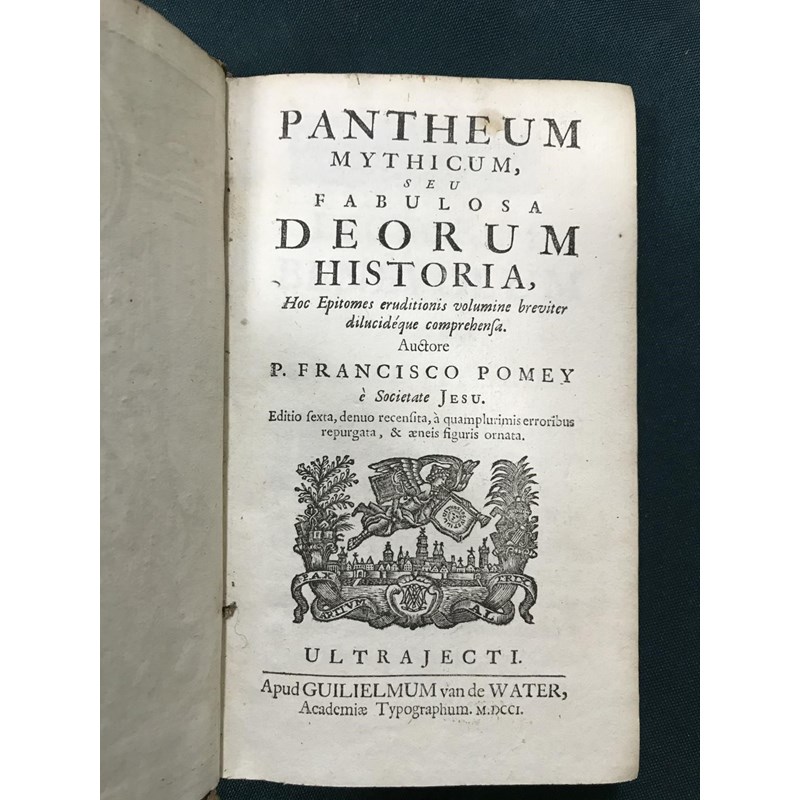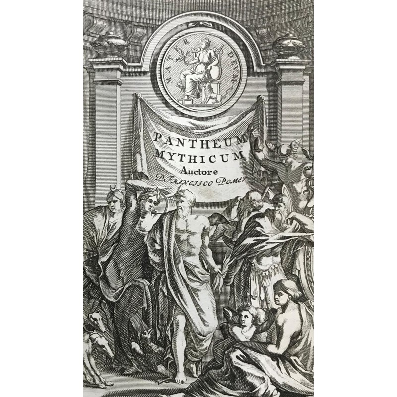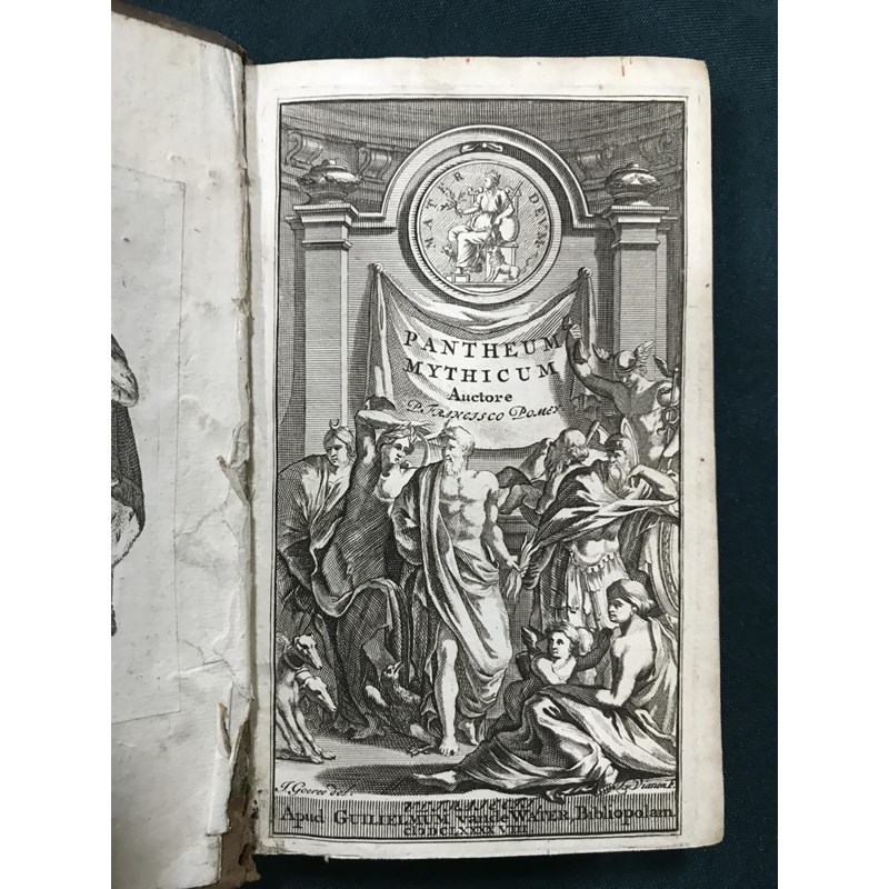 Pomey, Francisco. Pantheum Mythicum, seu Fabulosa Deorum Historia, engraved additional title and 27 engraved plates, a few folding, lacks first and final blanks, contemporary mottled calf, rubbed, joints cracked, bookplate of the Earl of Granard, 12mo, Amsterdam: Guilielmum van de Water, 1701