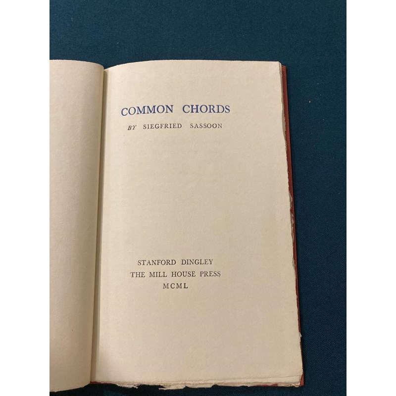 Sassoon, Siegfried. The Tasking, number 32 of 100 copies, inscribed to "Dennis" and signed with monogram, original cloth backed boards, 8vo, Cambridge: University Press, 1954 [Keynes A56]; Common Chords, one of 107 copies, original cloth, 8vo, Stanford Dingley: The Mill House Press, 1950 [Keynes A54] (2)