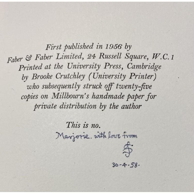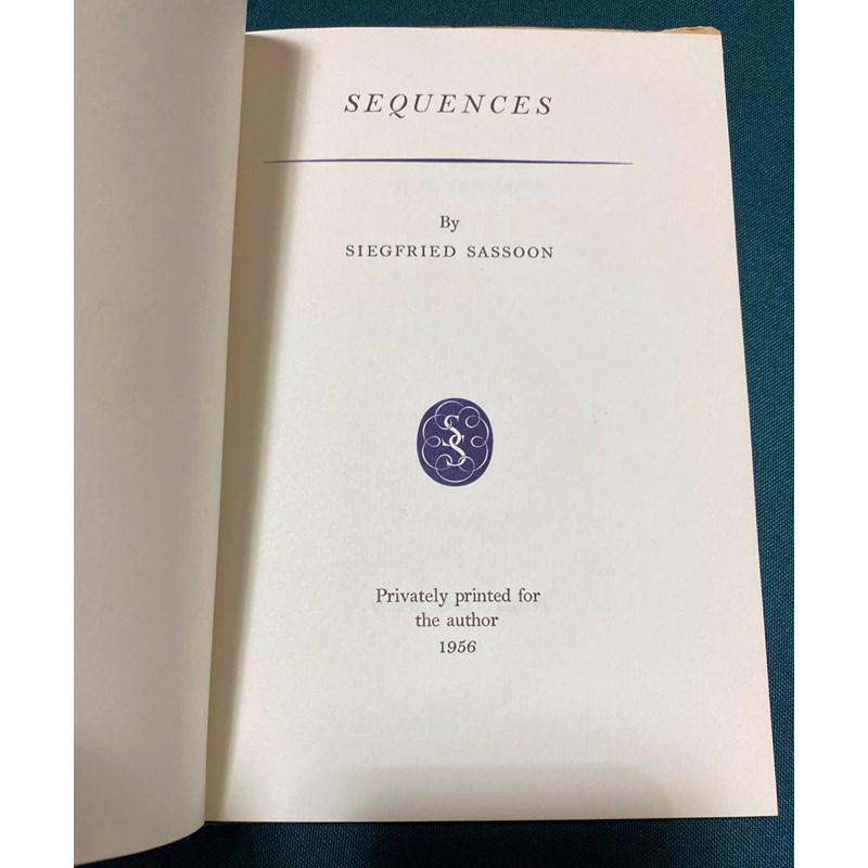 Sassoon, Siegfried. Sequences, one of 25 copies for private distribution on Millbrook handmade paper, this copy ex-series, presentation copy, inscribed "Marjorie, with love from SS 30.4.58", original cloth backed boards gilt, paper dust jacket, 8vo, Cambridge: Privately printed for the author, 1956 [Keynes A58b]