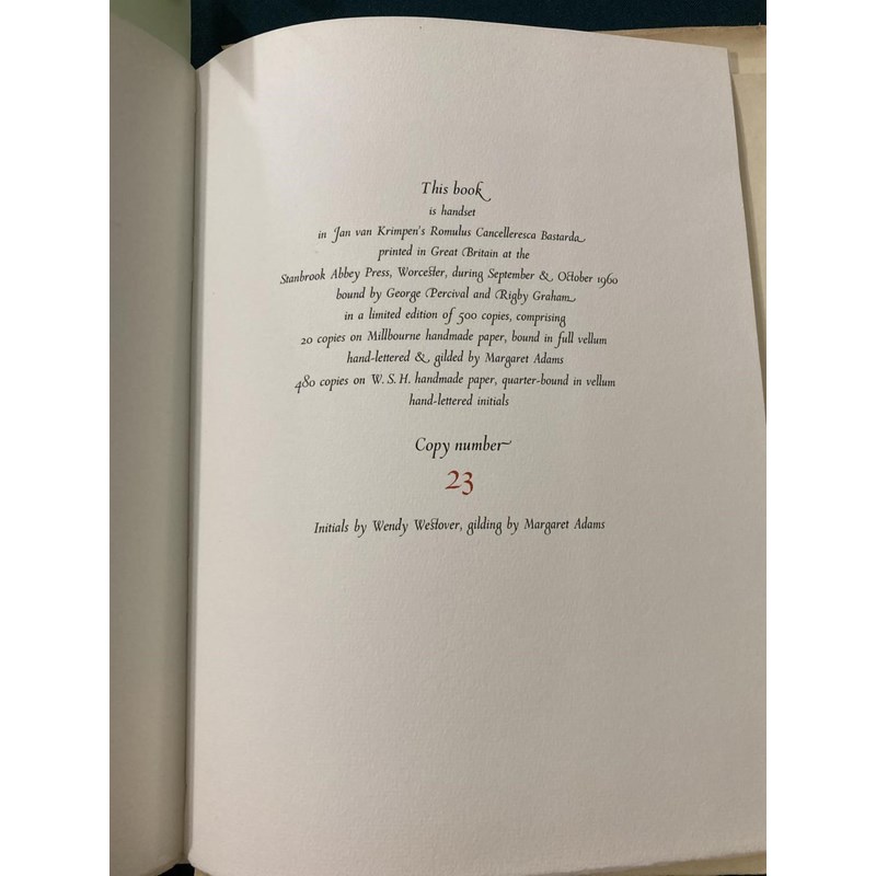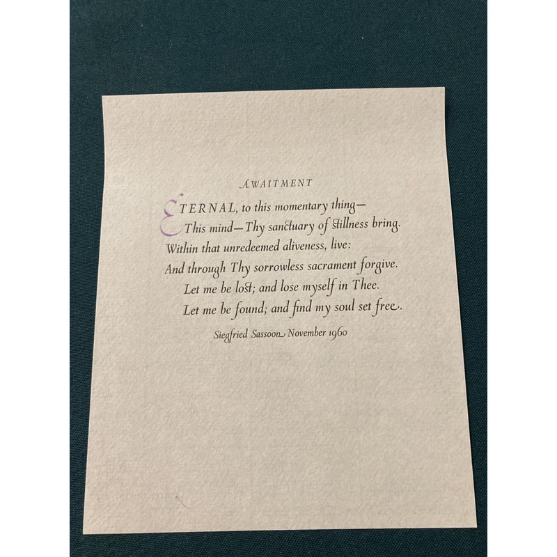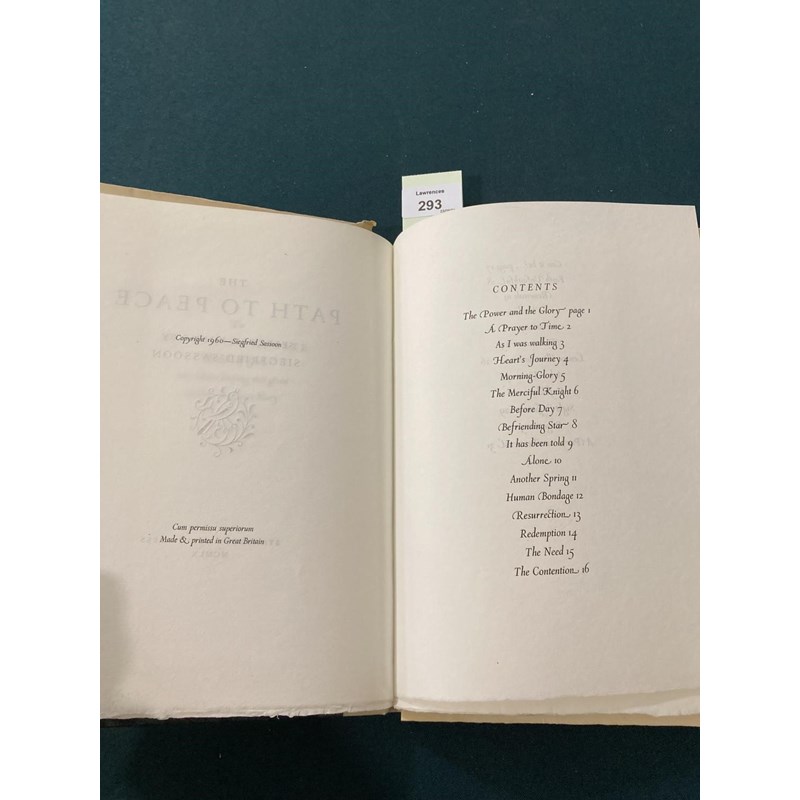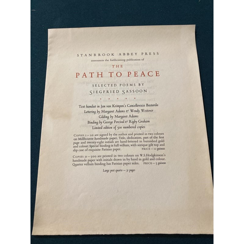 Sassoon, Siegfried. The Path to Peace, number 23 of 480 copies on W.S.H. handmade paper, original vellum backed boards, paper dust jacket, 4to, Worcester: Stanbrook Abbey Press, 1960