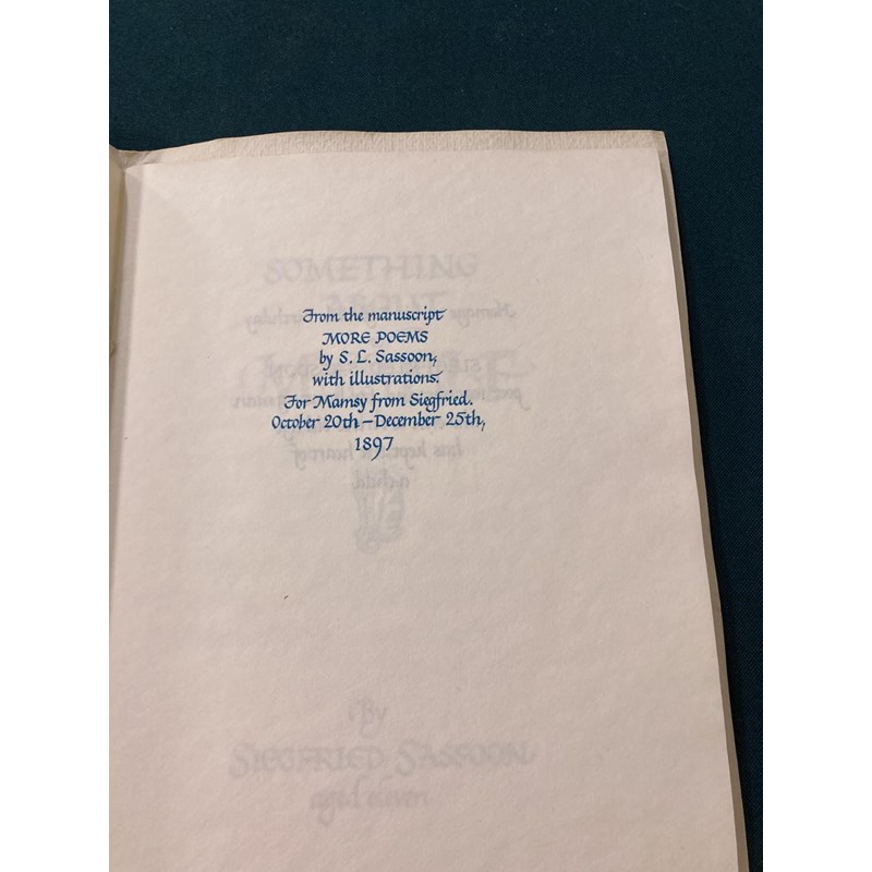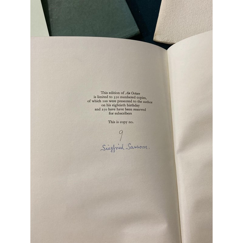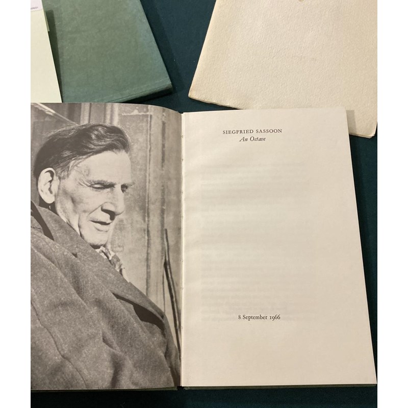 Sassoon, Siegfried. An Octave, number 9 of 350 copies, signed by the author, portrait frontispiece, original green boards, slipcase, 8vo., [No Place]: Shenval Press, 8th September 1966; Something About Myself, by Siegfried Sassoon, Aged Eleven, calligraphy and illustrations by Margaret Adams, original white wrappers gilt, 8vo, Worcester: Stanbrook Abbey Press, September 8th 1966 (2)