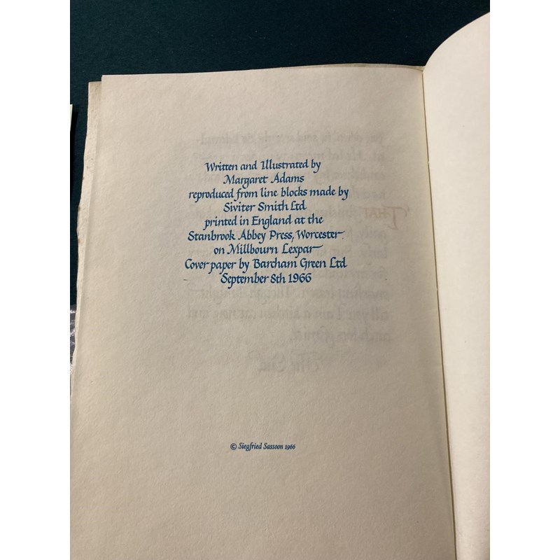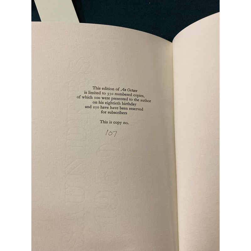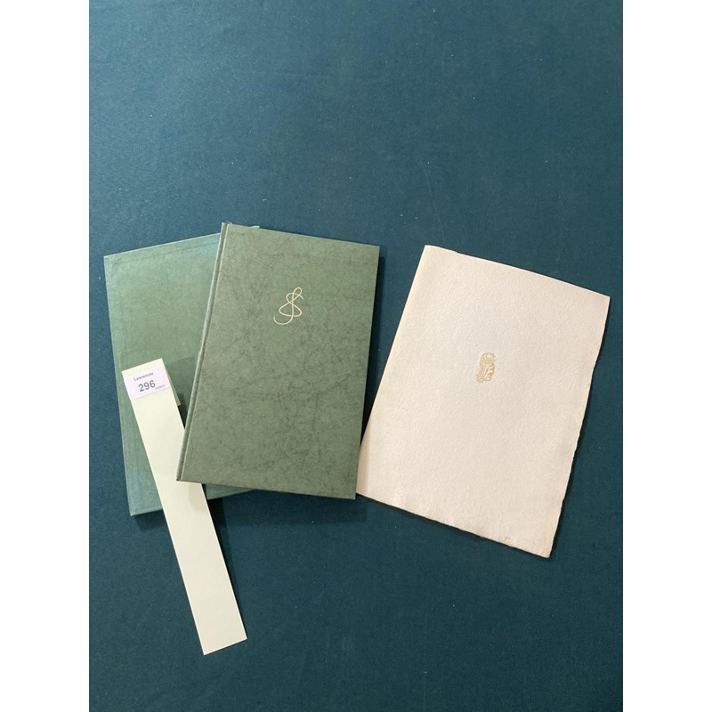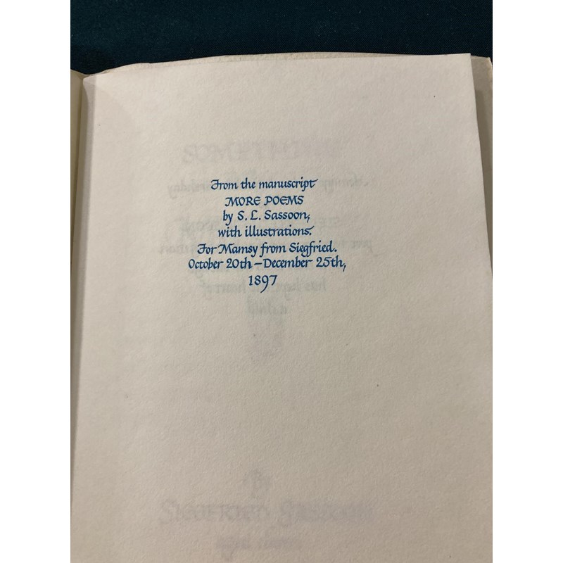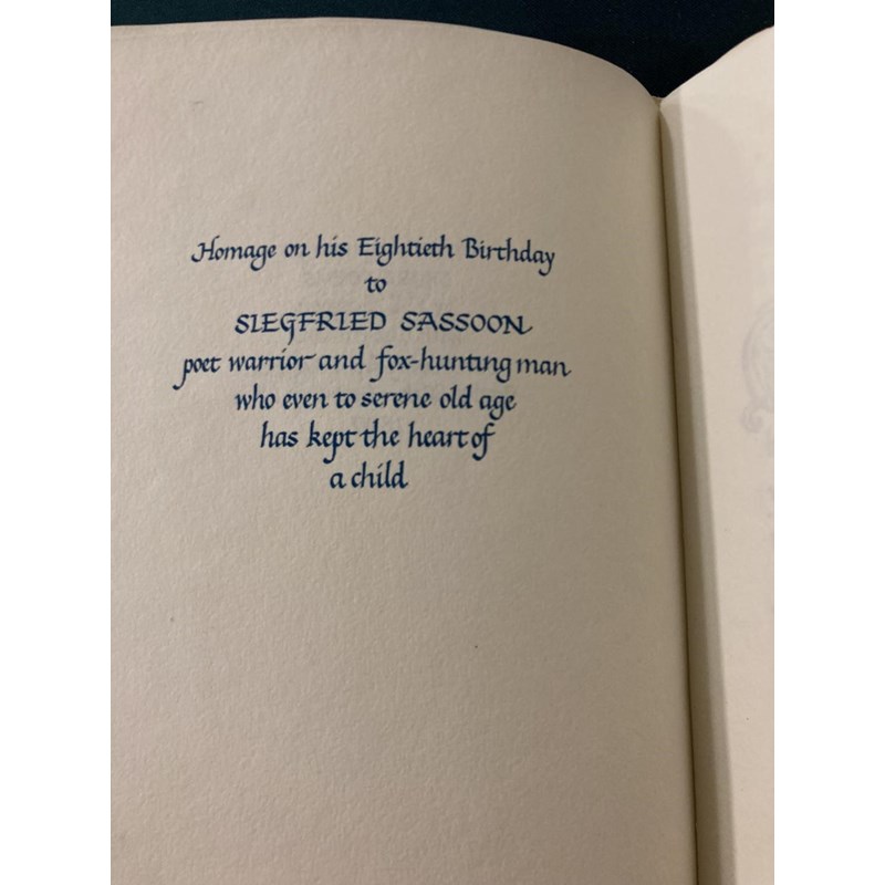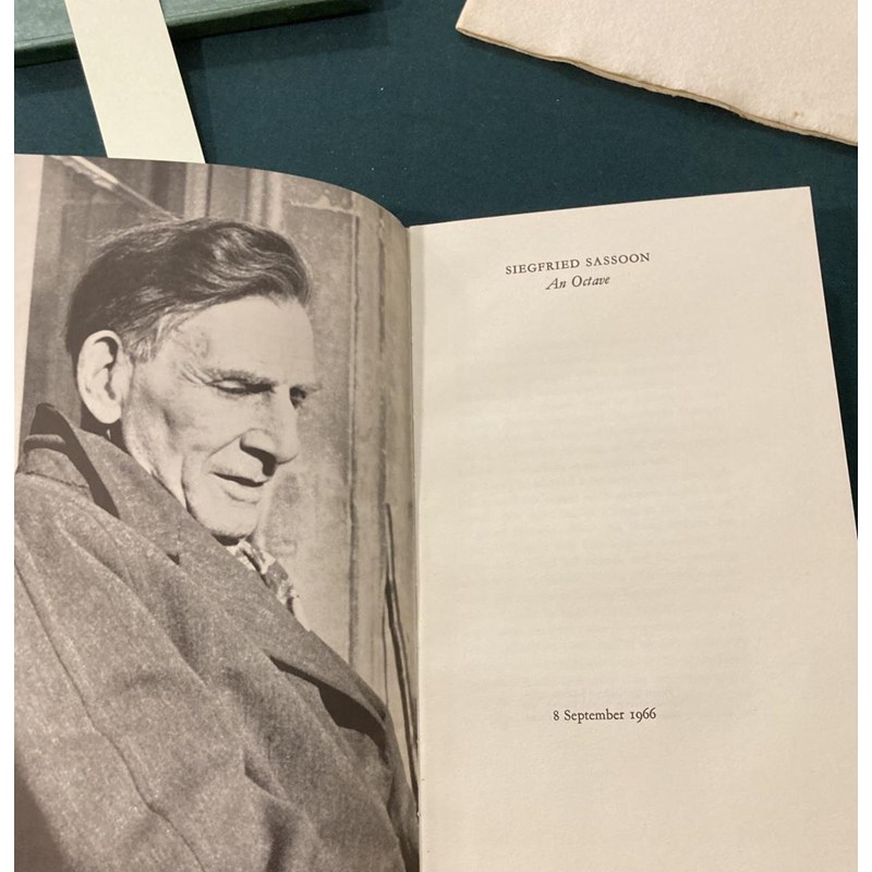 Sassoon, Siegfried. An Octave, number 107 of 350 copies, portrait frontispiece, original green boards, slipcase, 8vo., [No Place]: Shenval Press, 8th September 1966; Something About Myself, by Siegfried Sassoon, Aged Eleven, calligraphy and illustrations by Margaret Adams, original white wrappers gilt, 8vo, Worcester: Stanbrook Abbey Press, September 8th 1966 (2)