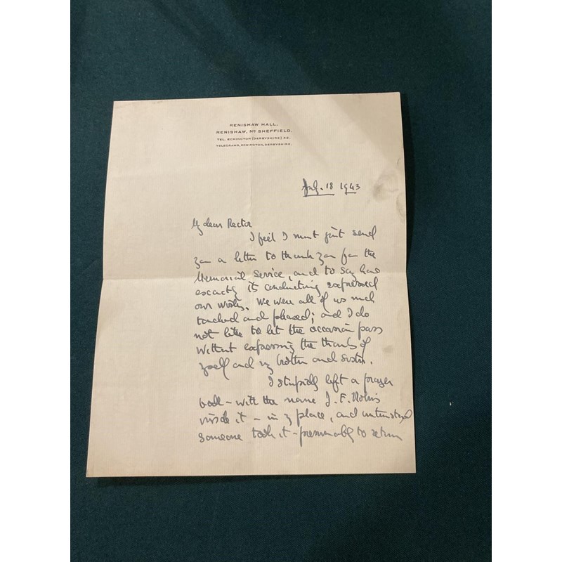 Loosely inserted is an ALS from Osbert Sitwell, Renishaw Hall, July 18th 1943, "My dear Rector" [Dennis Silk's father the Rev. Dr. Claude Whitehall Silk was vicar of nearby Eckington] thanking him for conducting the memorial service [following the death of Sir George Sitwell on 9th July 1943 in Locarno, Switzerland], "We were all of us much touched and pleased; and I do not like to let the occasion pass without expressing the thanks of myself and my brother and sister." 2pp., 4to. With another undated note from the same to Dr. Silk.