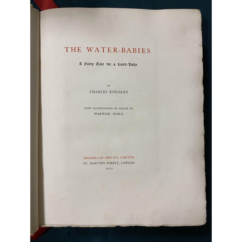 Goble, Warwick and Charles Kingsley. The Water-Babies, one of 260 copies of the edition de luxe, 32 tipped-in coloured plates, tissue guards, some browning, original full vellum gilt, lacks ties, soiled, top edge gilt, others uncut, 4to, London: Macmillan and Co., 1909