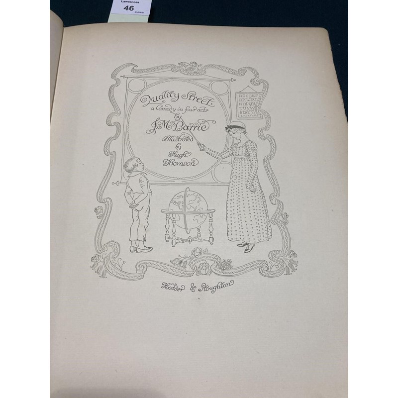 Thomson, Hugh, illustrator. Quality Street, A Comedy in Four Acts, number 666 of 1000 copies, signed by the artist, tipped-in coloured plates, tissue guards, original full vellum gilt, 4to, London: Hodder and Stoughton, [n.d.]