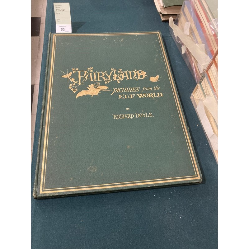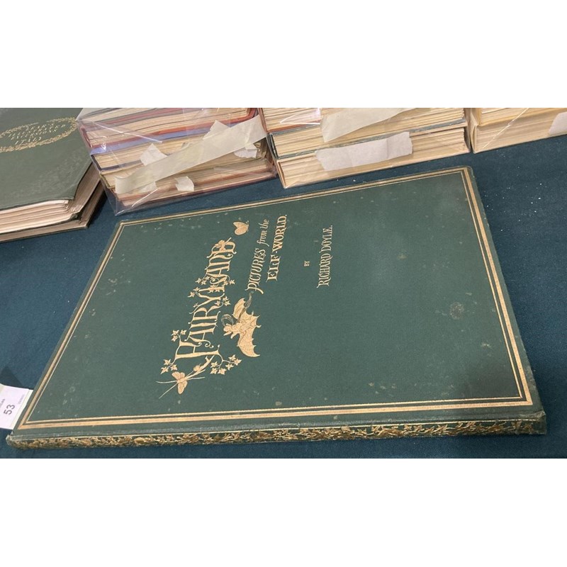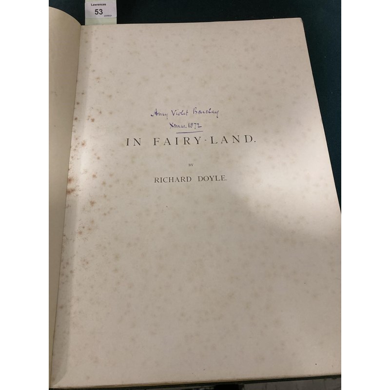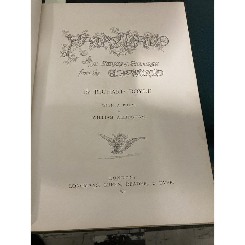 Doyle, Richard. In Fairyland. A Series of Pictures from the Elf World, first edition, half-title, 16 coloured plates, very light spotting to reverse of plates, publisher's original green cloth, decorated gilt, all edges gilt, half-title inscribed 'Amy Violet Barclay Xmas 1872', folio, London: Longmans, Green, Reader and Dyer, 1870