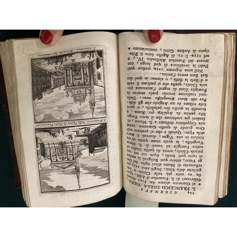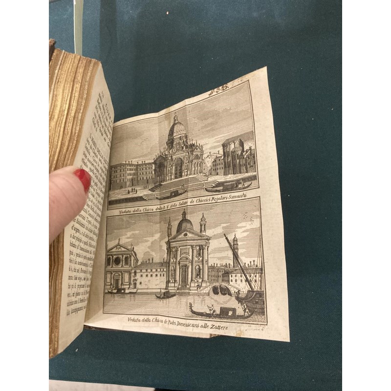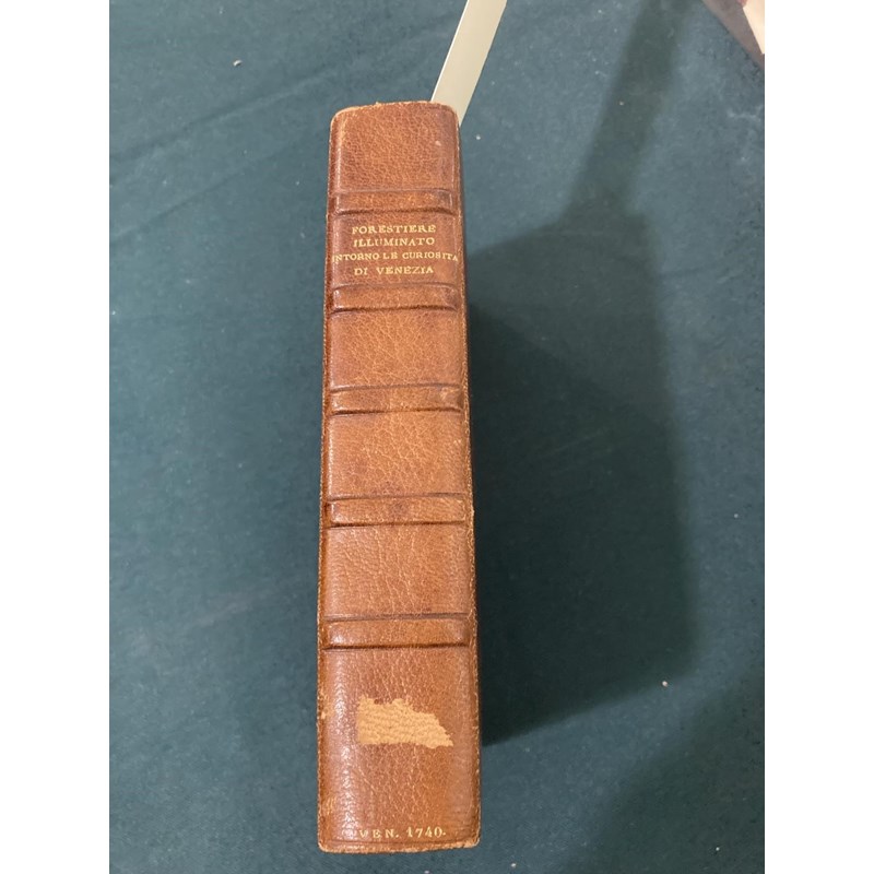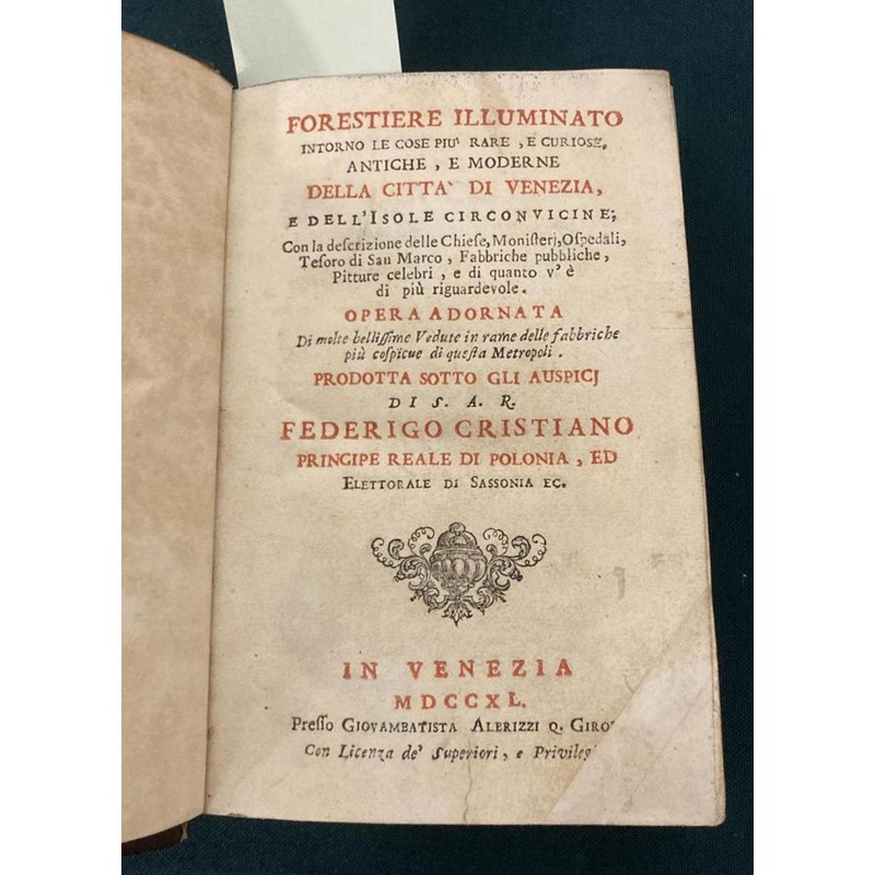 Albrizzi, Giovanni Battista. Forestiere illuminato intorno le cose piu rare, e curiose, antiche, e moderne della citta di Venezia, 23 folding plates and 17 single page only, without frontispiece, title repaired with slight loss of imprint, D5 with small wormhole affecting text, frequent repairs to lower outer corner, particularly to early leaves, some browning and spotting, nineteenth century half morocco by S. Kaufman, all edges gilt, 8vo, Venice: Giovambastista Alerizzi, 1740
