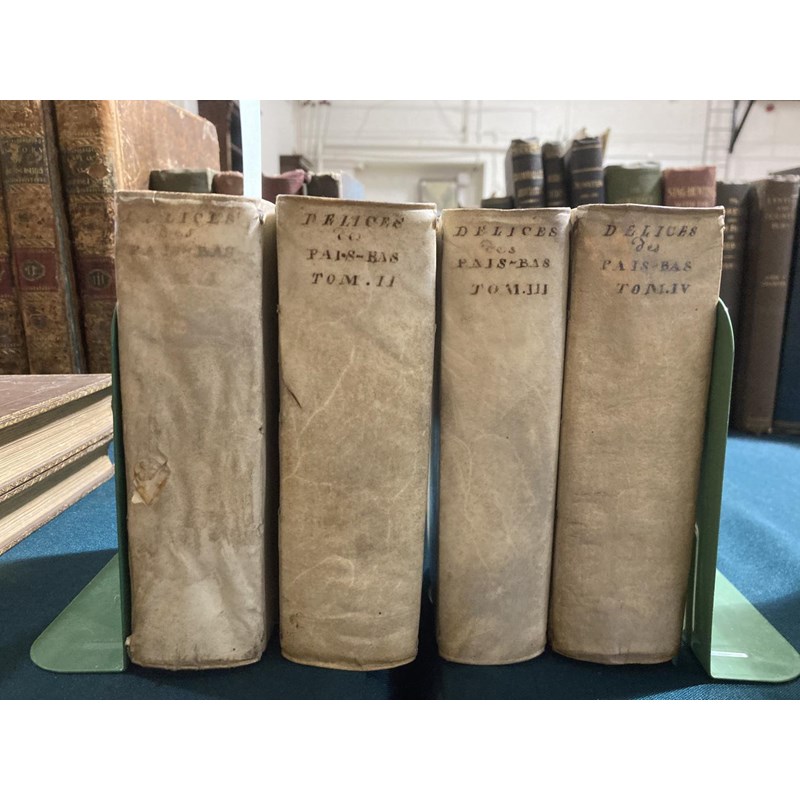 Christyn, Jean Baptiste. Histoire Generale des Pais-Bas, 4 volumes, 4 engraved frontispieces, 142 engraved maps, plans and plates, including 136 folding, a few shaved, some with margins slightly frayed, occasional light browning, contemporary full vellum, lightly soiled, bookplate of Merthyr Guest, 8vo, Brussels:Francois Foppens, 1720