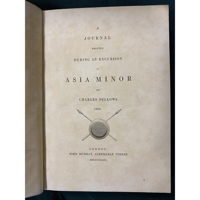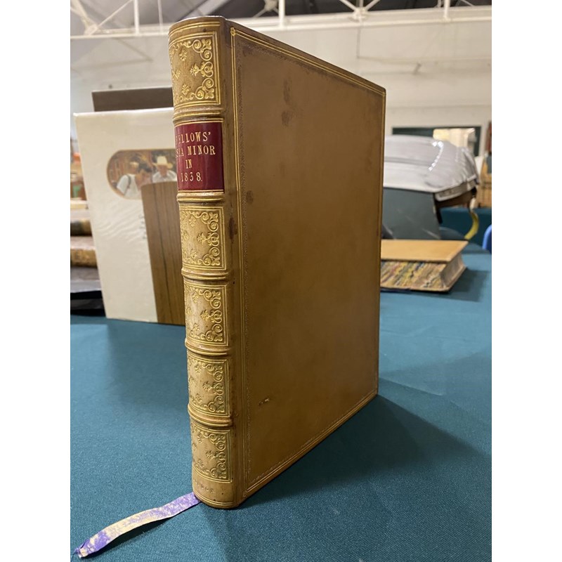 Fellows, Charles. A Journal written during an Excursion in Asia Minor... 1838, first edition, engraved frontispiece, double-page engraved map, 20 lithographed or engraved plates, one double-page, tissue guards, wood-engraved illustrations in text, occasional light browning, contemporary calf, spine gilt, bookplate of Merthyr Guest, 8vo, London: John Murray, 1839