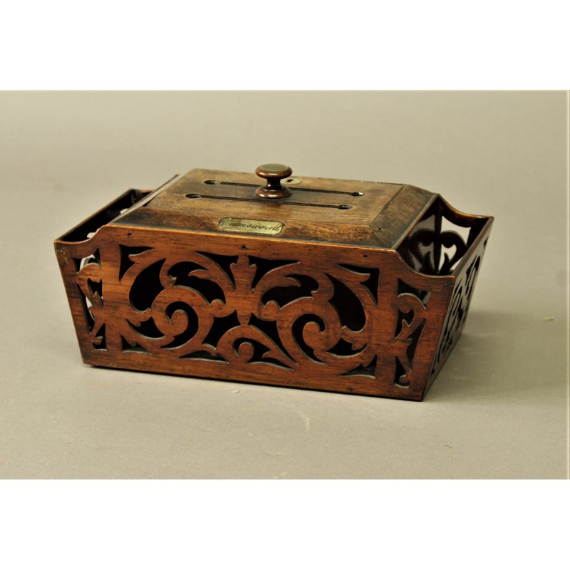 later 19th century, with foliate, reticulated sides and hinged cover, the panels inscribed 'Answered' and 'Unanswered', height 13cm, width 27cm, depth 14cm