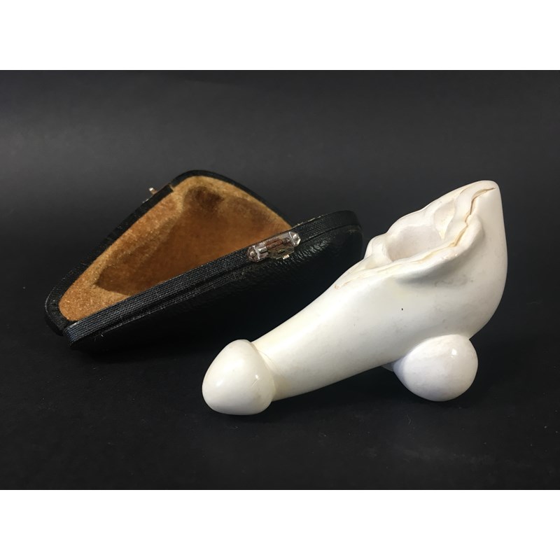 EROTICA: Meerschaum pipe, in the form of a penis, in a fitted case, apparently unused, length 11cm