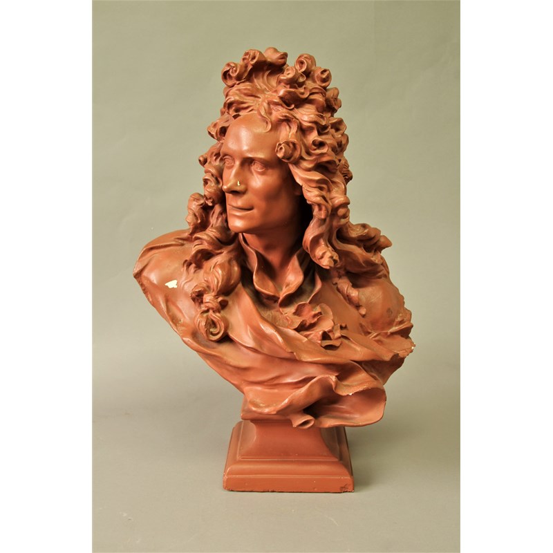 PAINTED PLASTER BUST 20th century, probaby of Voltaire, on a socle base, height 71cm