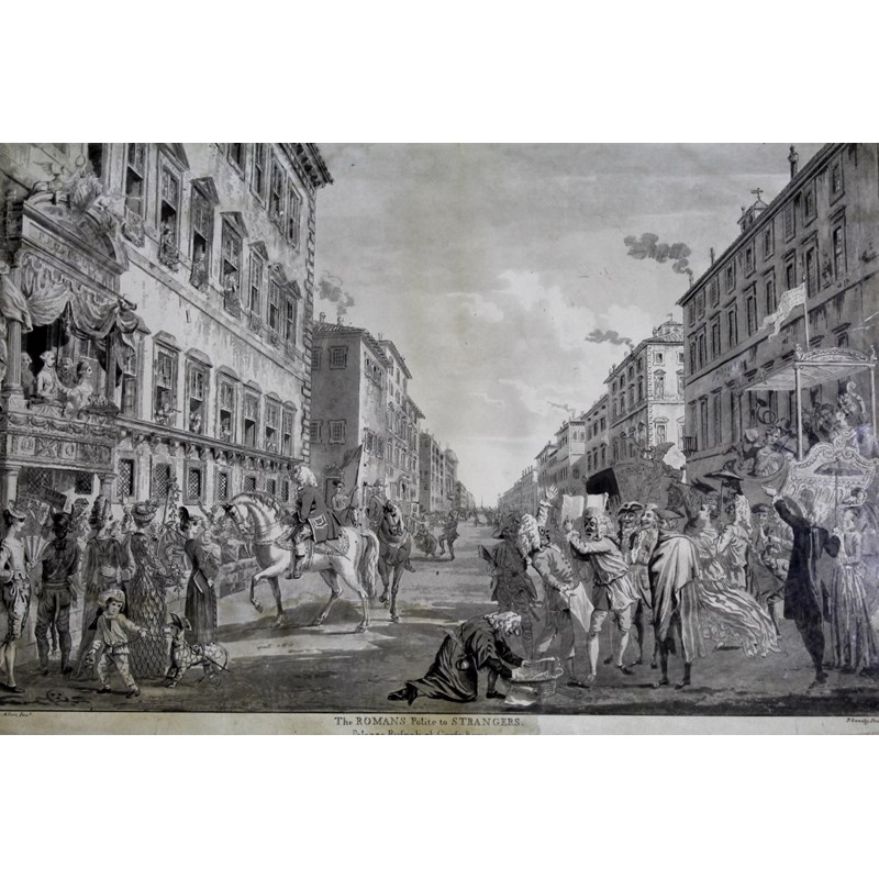 with `View of Arco Felice`, aquatint by Sandby after P. Fabris, published 1777, 27.5 x 53.5cm.; and a separate printed explanation for `The Romans..` (4 items, 1 unframed)