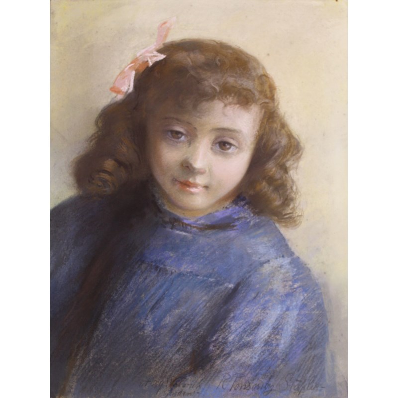 SIR ROBERT PONSONBY STAPLES, Bt. (1853-1943) BELFAST INTEREST: PORTRAIT STUDY OF A GIRL IN A BLUE DRESS Signed, inscribed at 39 W.....[unclear] / Gardens, pastels, unframed 40 x 30cm.; with a portrait of Bart Kennedy, `Sketched at Grand Central Hotel/ 7th Feb 1912. Belfast`, signed twice and inscribed, watercolour with pen and ink, unframed, 21 x 28cm. (2) Provenance: London, Phillips, Studio Sale, June 11th 1991 (each with the auction stamp verso)
