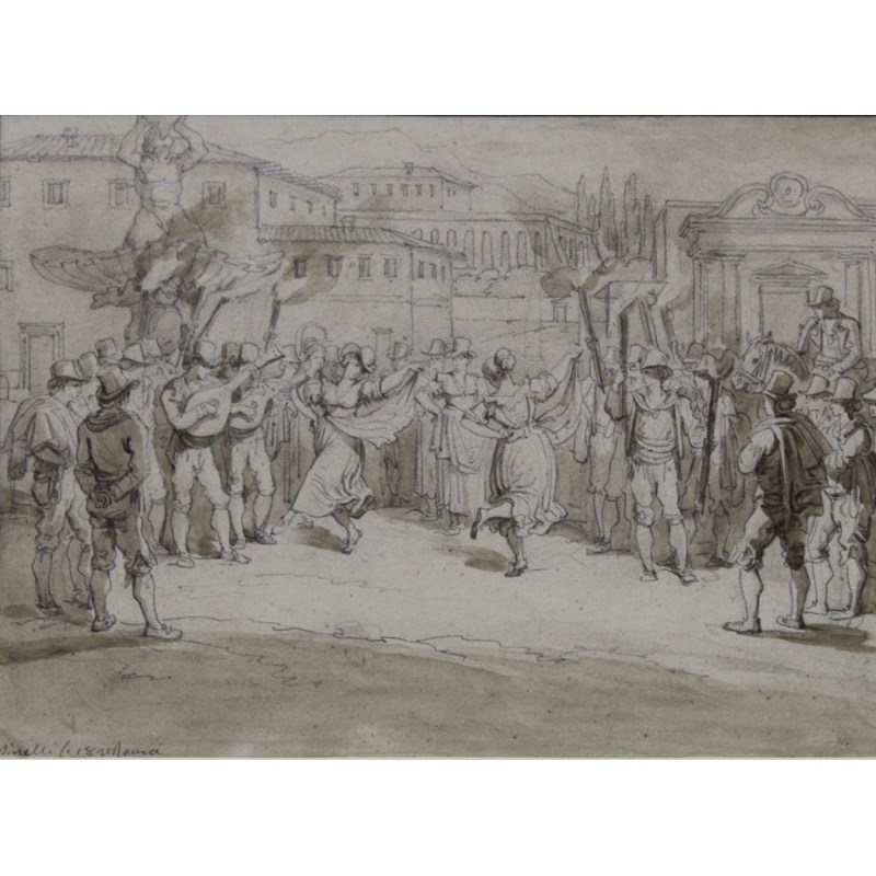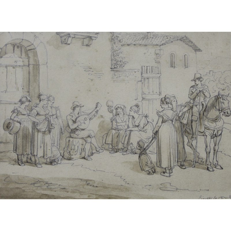 BARTOLOMEO PINELLI (1781-1835) ROMAN MUSICIANS A pair, both signed and dated 1821 Roma, pencil and pale brown washes Each 13.5 x 19cm approx. (2)
