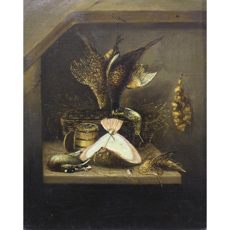 ATTRIBUTED TO BENJAMIN BLAKE (1757-1830) A SPORTSMAN'S LARDER A pair, oil on canvas Each 24.5 x 19cm. (2)