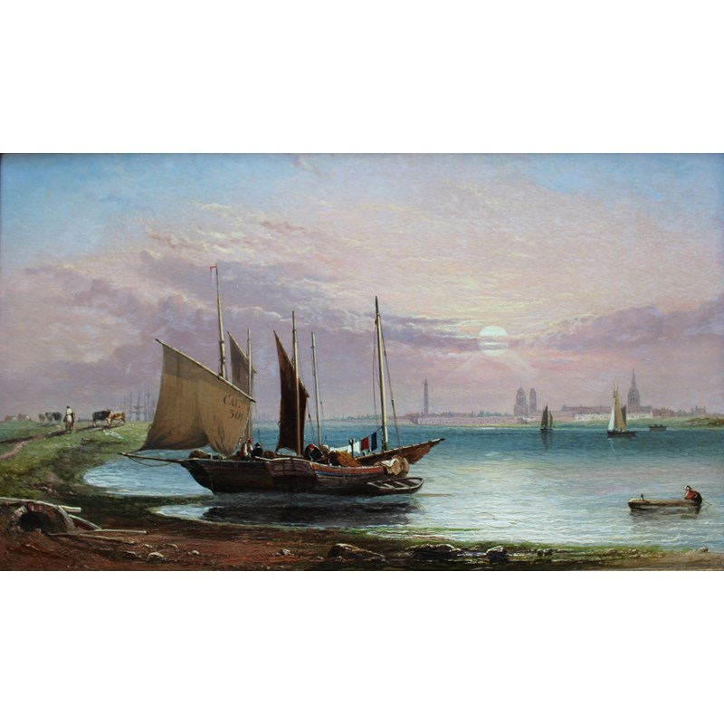FISHING BOATS MOORED IN AN ESTUARY OFF CALAIS