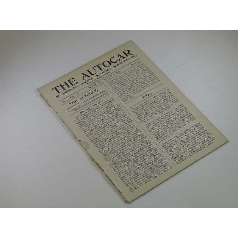 The Autocar Vol. I, 1896 3 Issues: Nos. 32, 34 & 35, June 6th, 20th and 27th. (3)
