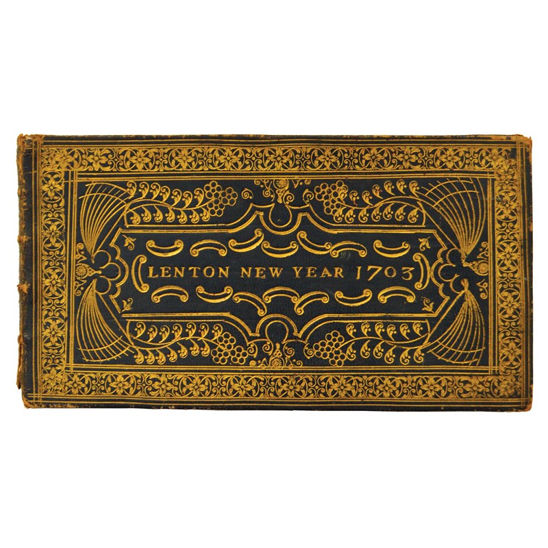 Four staves per page, 2pp. blank, 4pp. title and dedication, 12pp. music, 2pp. blank, marbled endpapers, contemporary polished morocco, tooled elaborately gilt, titled on upper cover 'LENTON NEW YEAR 1703', all edges gilt, spine broken, 101mm x 195mm