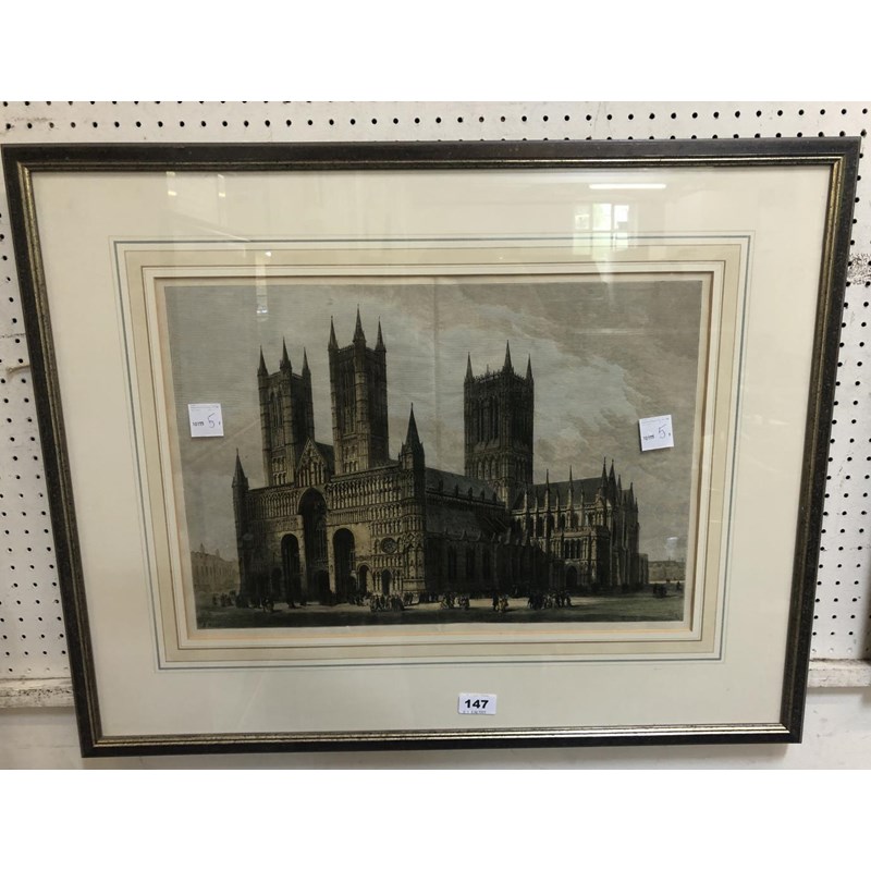 19thC Hand Coloured Print of Wells Cathedral after Samuel Read
