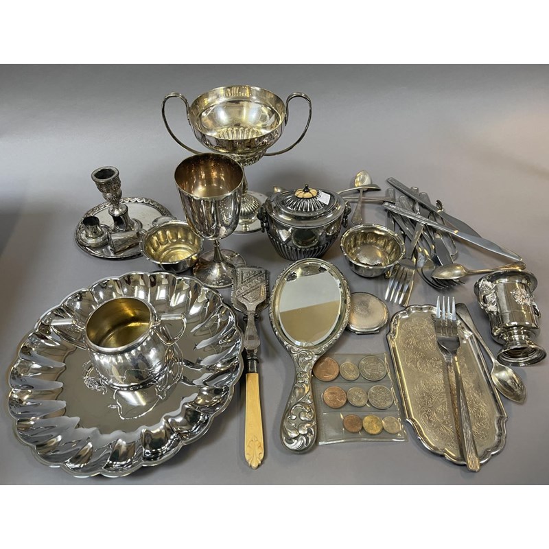 Quantity of Silver Plate, etc to include Trophy Cup, Chamberstick etc