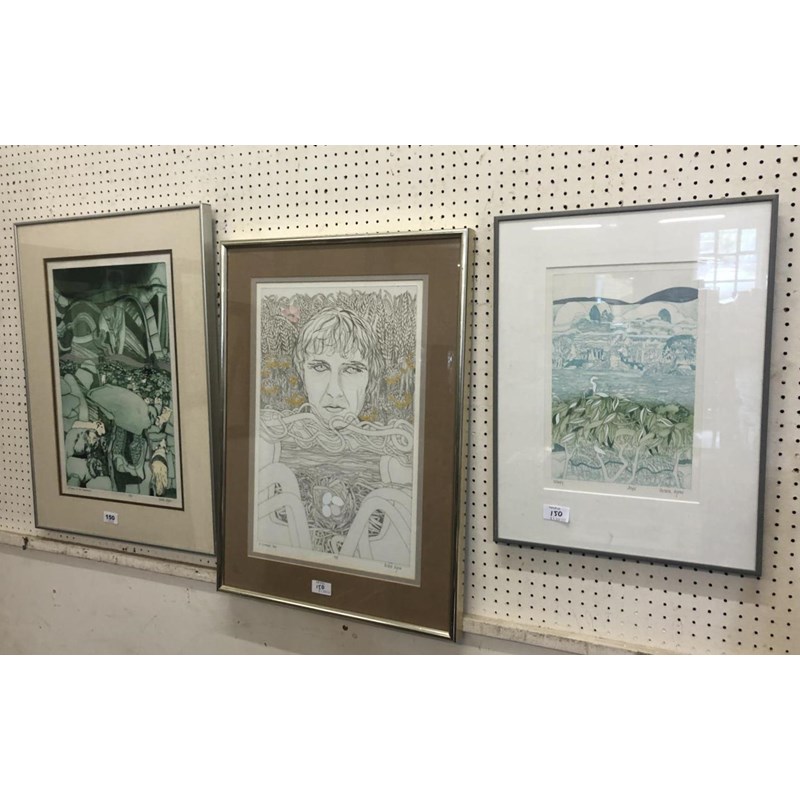 Three Modern Colour Etchings by Peter Lyon, (Storm In The Mountains, Summer Sky, Ferry), Signed