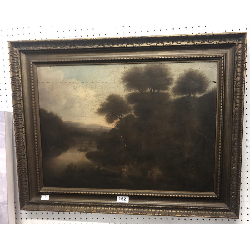 English School, Figures in a Wooded Landscape, Oil on Panel, A/F