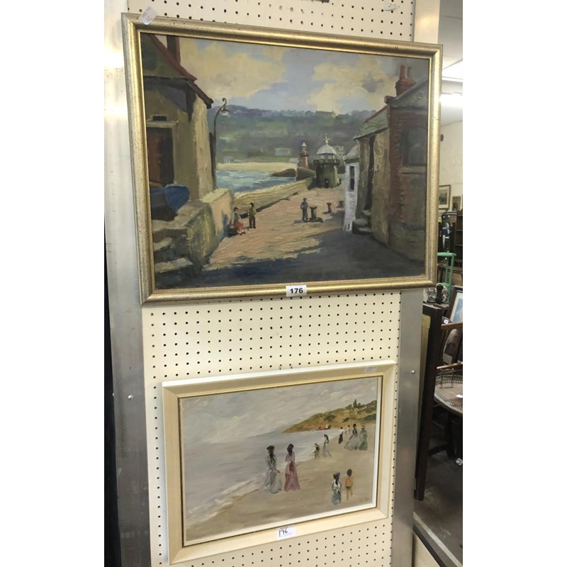 Two Framed Oils on Board or Canvas, Beach Scene and Pier (St Ives)