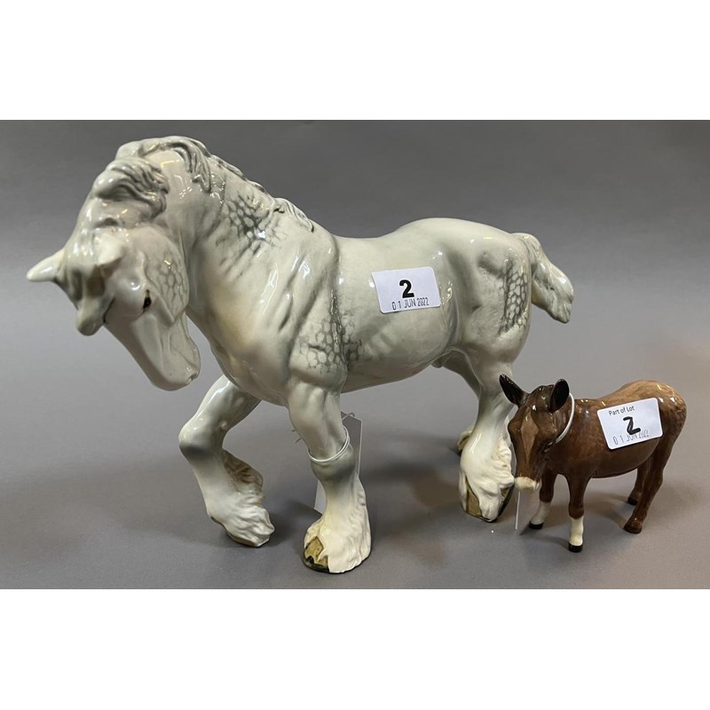 Beswick 'Grey' Shire Horse and a Beswick Donkey (2) Height of Tallest 21cm