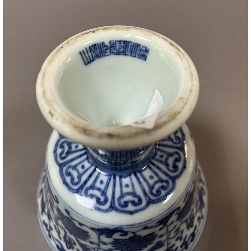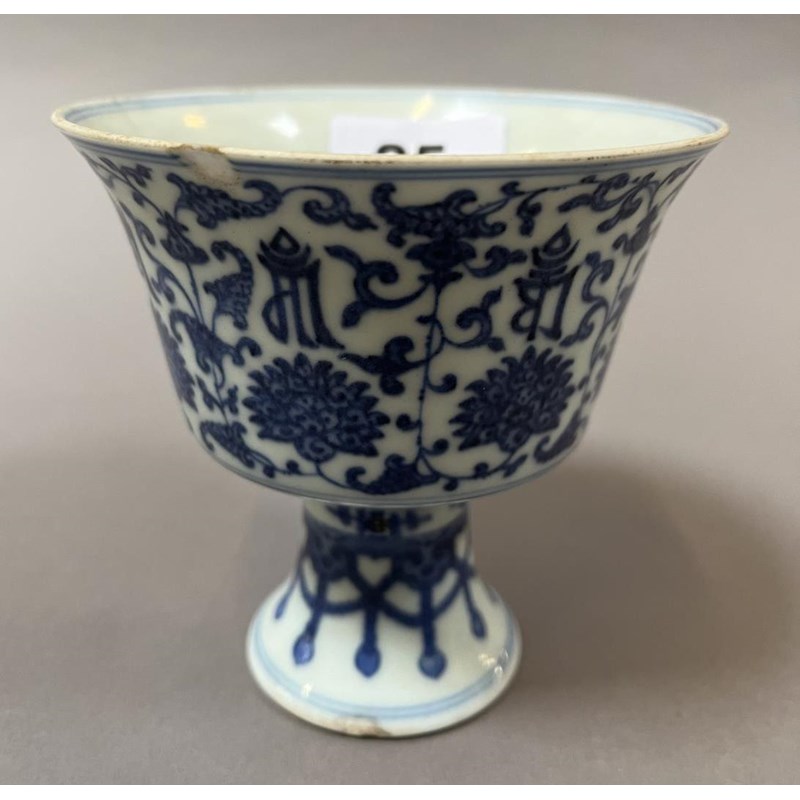 Chinese Blue and White Stem Cup, Ch'ien Lung Mark, Height 11cm