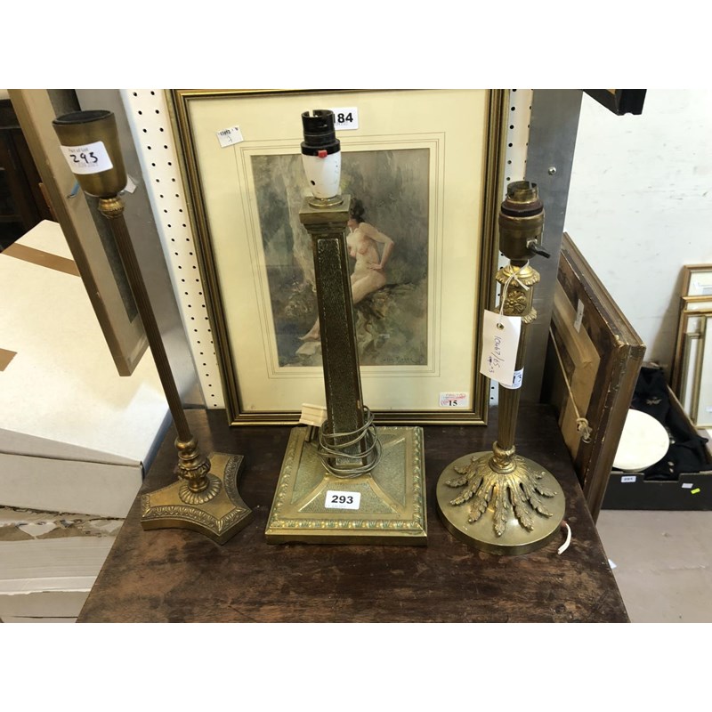 Three Assorted Brass Table Lamps, Height of Tallest 43cm