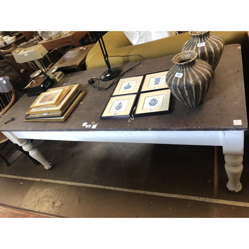 Victorian Painted Kitchen Table with Black Slate Top, H71cm, W189cm, D77cm