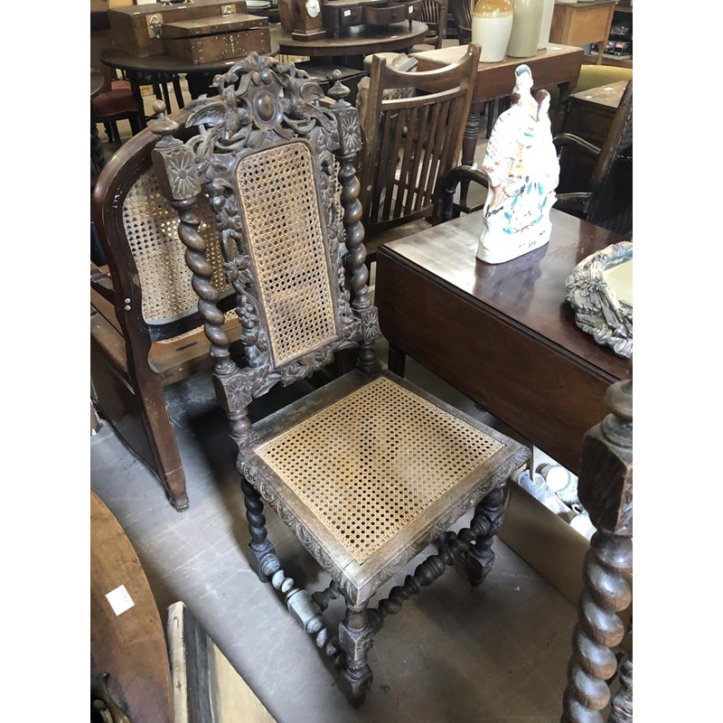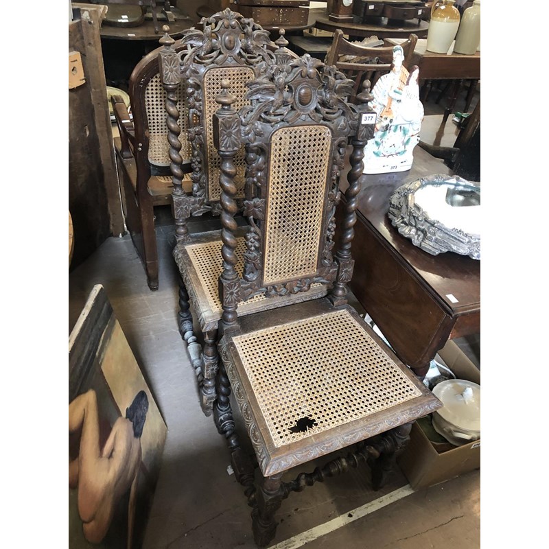 Carved Oak Chairs, Barley Twist, Late 19th/Early 20th Century