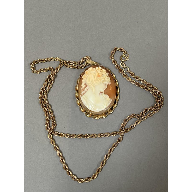 Cameo Pendant in 9ct Gold and 9ct Chain, Total Weight 21.7g