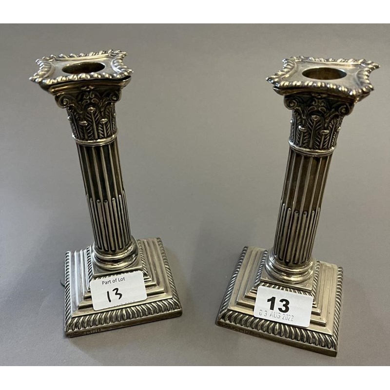 Pair of Silver Corinthian Column Candlesticks, Filled