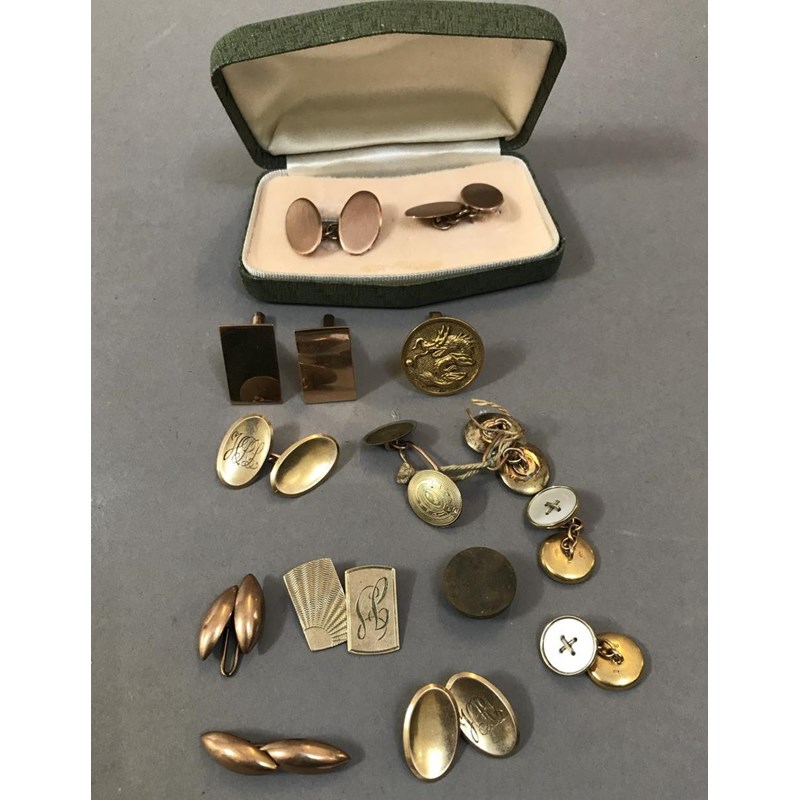 Four Pairs of 9ct Gold Cufflinks, a Pair of 14ct Gold Cufflinks, a Single 14ct Chinese Cufflink, a Single Gold Cufflink and Plated Examples