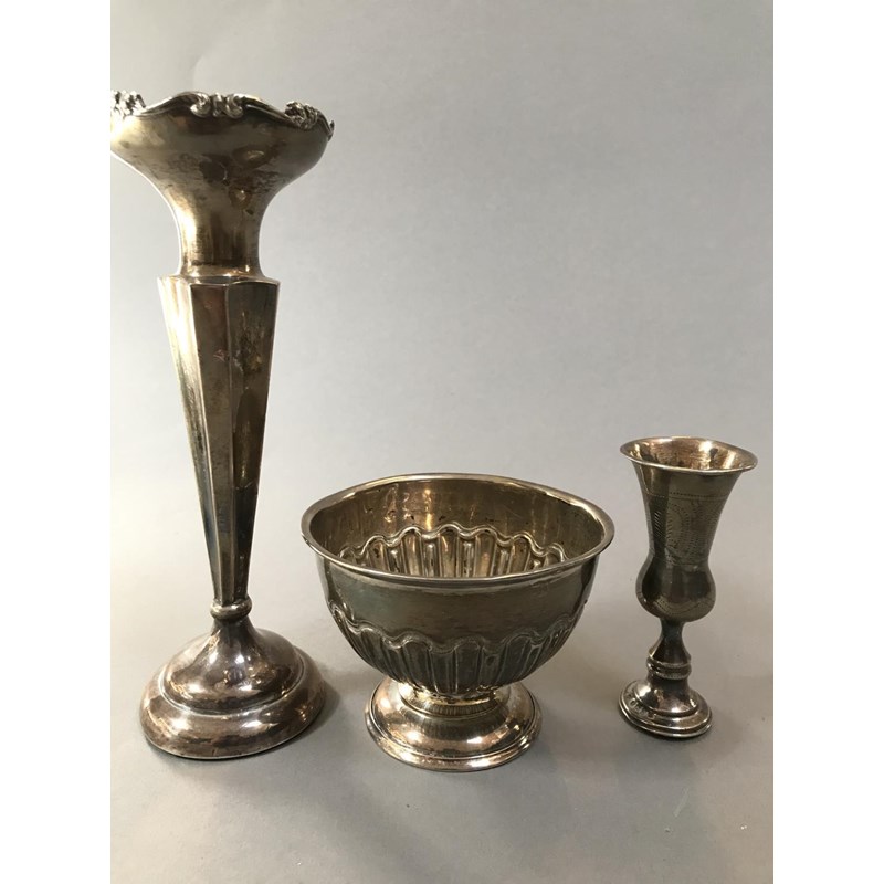 Silver Bowl and Two Spill Vases (Base Filled), Total 10.9 Ozt
