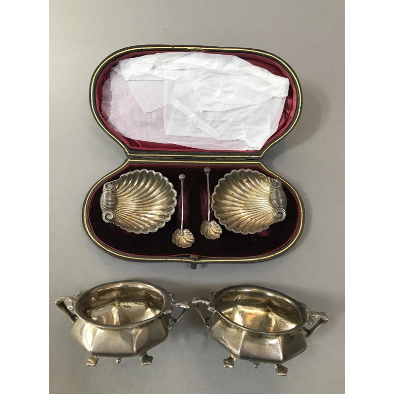 Pair of Shell Shaped Silver Salts (Cased) and a Pair of Silver Salts (4), Total 4.3 Ozt