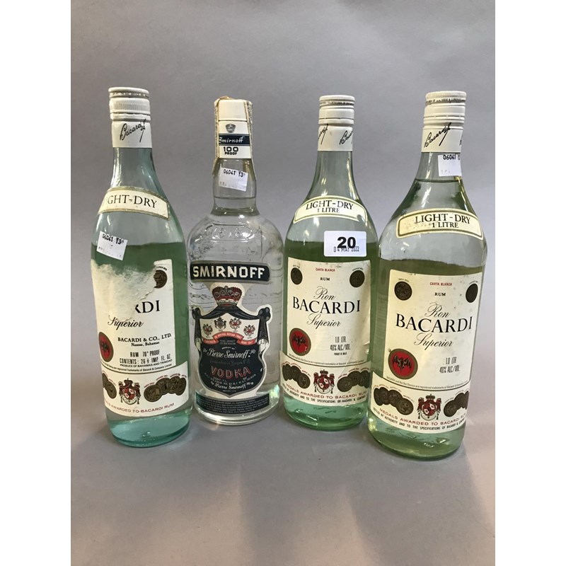 Bacardi Superior Rum, 1-Litre Bottle x 2, a Smirnoff Bottle of Vodka and a Bacardi Bottle of Rum (4)