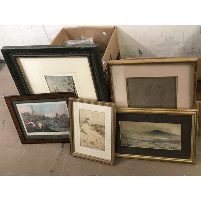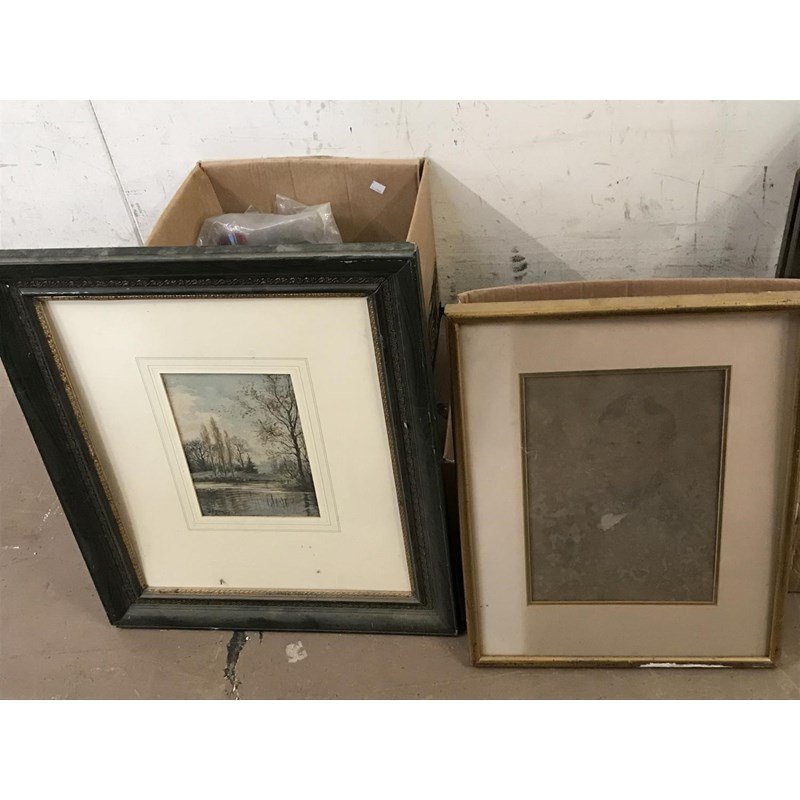 Box of Assorted Pictures and Frames