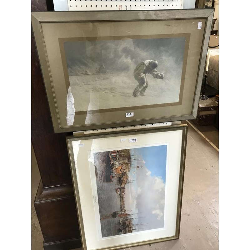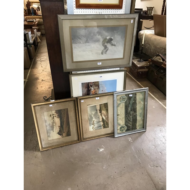 Two Rural Watercolours and Three Assorted Prints (including Dollman's `A Very Gallant Gentleman`) and a Folio Case