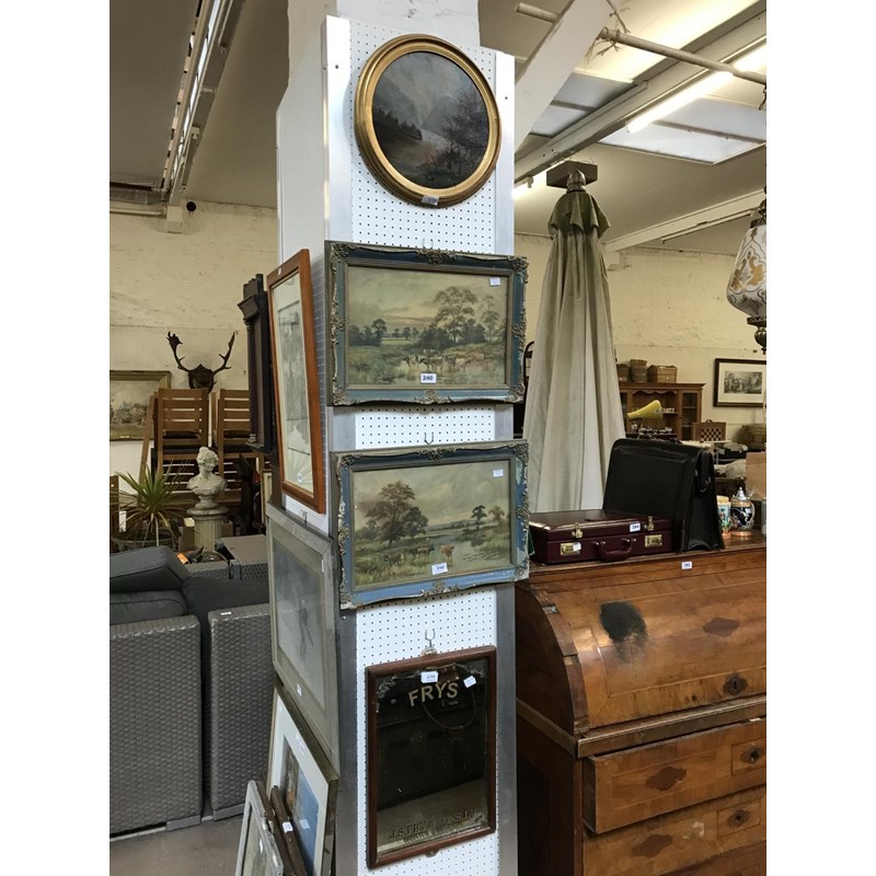Two Framed Prints, Fry's Mirror and Circular Oil on Board