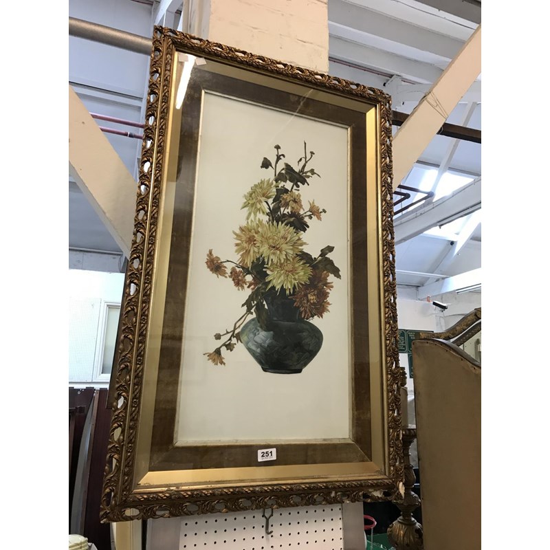 Oil on Milk Glass, Still Life of Bowl of Flowers, by JS, 1906