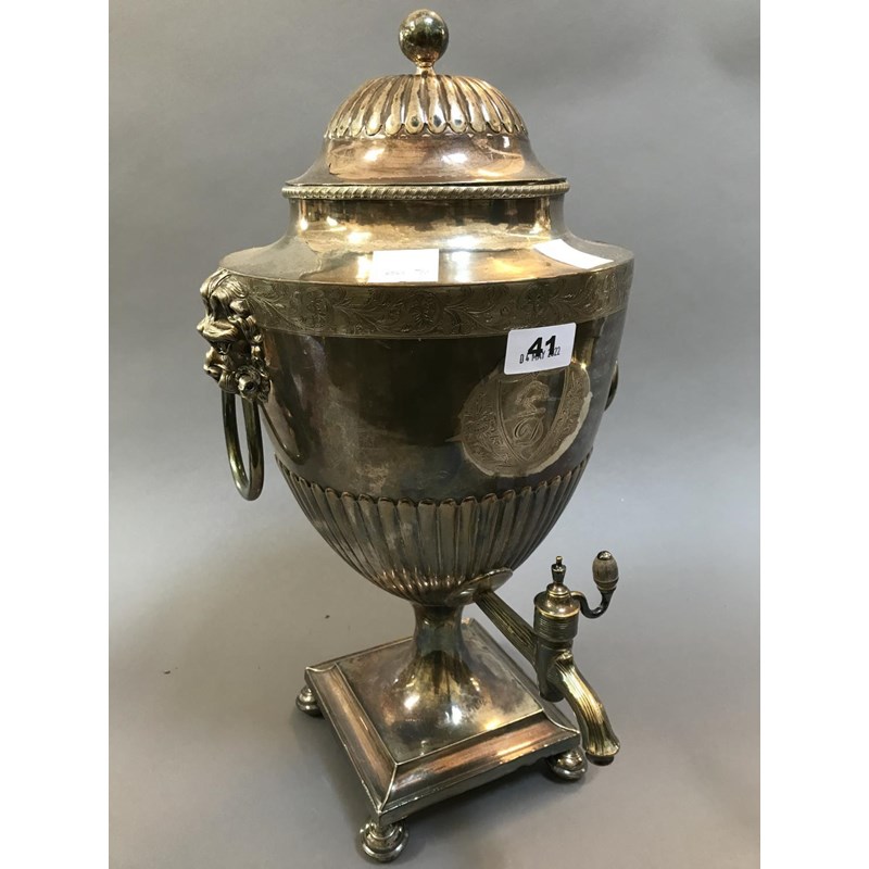 Old Sheffield Plated Middle Period Tea Urn, Height 47cms