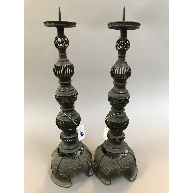 Pair of Eastern Pricket Candlesticks, Height 26cm