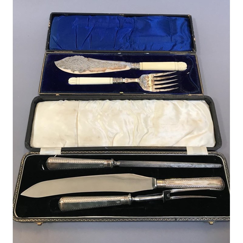 Cased Set of Silver Fish Servers and Cased Carving Set (2)