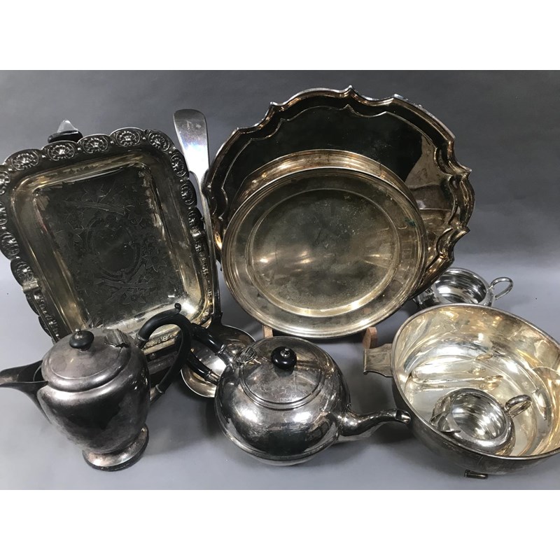 Mixed Lot of Platedware: Deco Bowl, Salver, Teapot etc