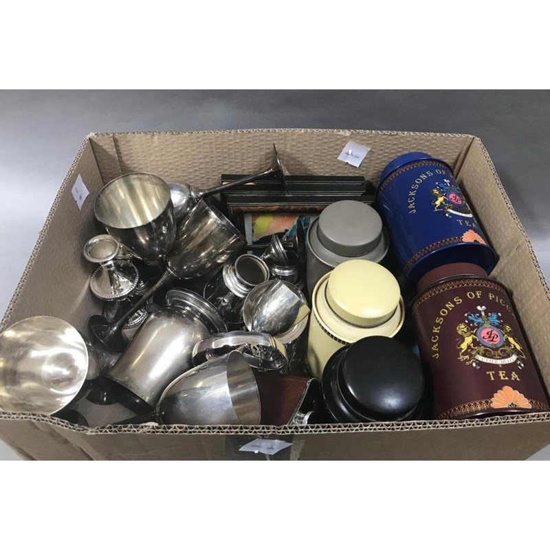 Silver Plated Ware, Six Goblets, a Small Goblet, Tins etc (lot)