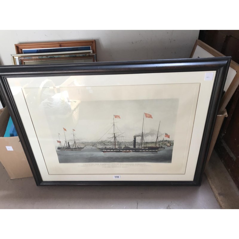 Large Framed Ship Print, after William J. Huggins, restrike